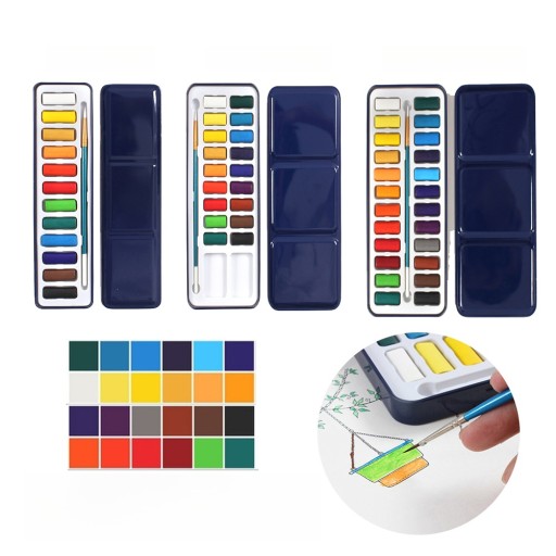 ✅24 kolorowe blaszane pudełko z solidnym zestawem farb akwarelowych z pędzlem