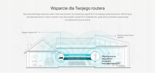 Sprzęt montażowy AC1900 Przedłużacz zakresu Wi-Fi RE550, przewodnik szybkiego montażu