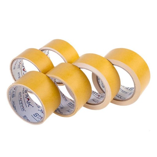 Dwustronna taśma Starpak o uniwersalnym zastosowaniu, przeznaczona do klejenia różnych powierzchni: wykładzin, papieru, plastiku, tektury itp. Taśma pasuje również do pakowarek, jest bardzo cienka i giętka. Zapoznaj się również z innymi produktami Starpak! Taśma o długości 25 metrów i średnicy 3,8 cm. Produkt nieodpowiedni dla dzieci poniżej 3 lat. Wymiary produktu: 38mm/25 m.