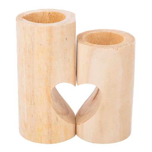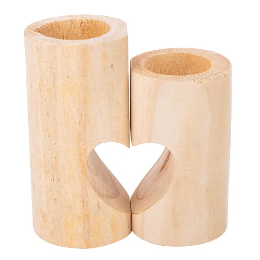 W tych drewnianych świecznikach możesz umieścić podgrzewacze, które idealnie nadają się do małych aranżacji lub postawienia na stole.