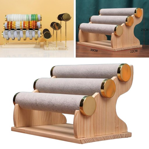 Chroni Twoje bransoletki: uchwyt na bransoletkę z drewnianą podstawą jest trwały i przechowuje bransoletki, zapobiegając ich zarysowaniu.