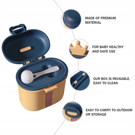 Opis Wyszukiwanie opakowania na mleko w proszku ? naszego wielokrotnego użytku pojemnik na mleko w proszku będzie najlepszym wyborem dla Ciebie. Wykonany z najwyższej jakości materiału, wystarczająco bezpieczny dla Twojego małego dziecka. Praktyczna kompaktowa konstrukcja zapewnia jego popularność. Nadaje się do domu, podróży itp. Funkcje Kolor: Żółty Materiał: PP Rozmiar: 12,00X10,00X7,50cm 4,72X3,93X2,95 cala Wykonane z najwyższej jakości materiału zapewniającego zdrowe i bezpieczne użytkowanie dziecka. Nasze pudełko jest wielokrotnego użytku, łatwe do czyszczenia, bardzo wygodne. Przenośny i kompaktowy, łatwy do przenoszenia na zewnątrz lub do przechowywania. Może pomóc w utrzymaniu świeżości mleka w proszku i innej żywności dla niemowląt. Przyjazna dla środowiska, świetnie uszczelniona funkcja odporna na wilgoć. 1 x pudełko 1 x łyżka