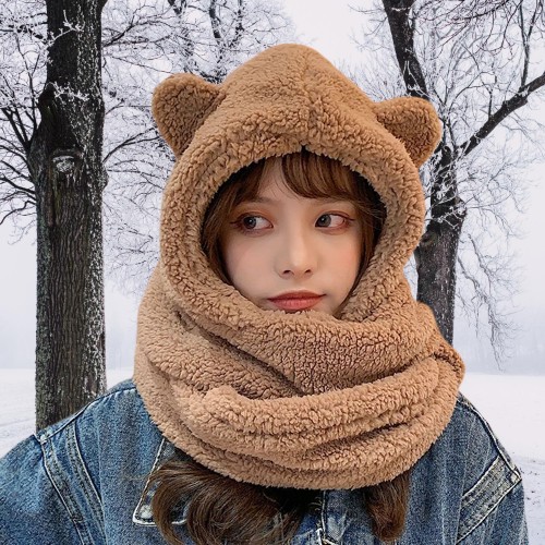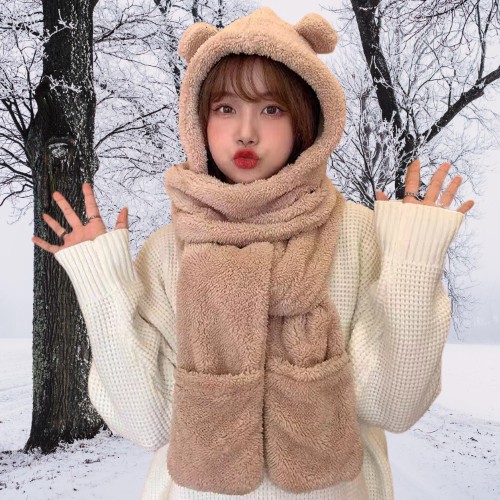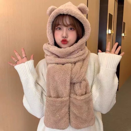 ТЕПЛАЯ ПЛЮШЕВАЯ ШАПКА И ШАРФ С МЕДВЕДЬМИ УШАМИ