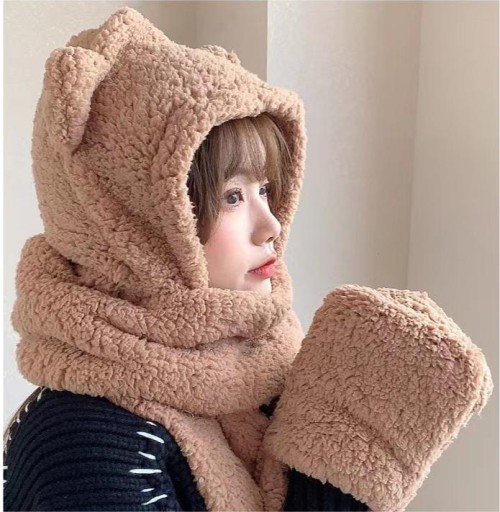 CIEPŁA CZAPKA SZALIK RĘKAWICZKI DLA KOBIET 3W1