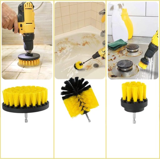 Są prawie kompatybilne z bezprzewodowymi nasadkami szorującymi z nasadkami sześciokątnymi 1/4 cala. Wystarczy włożyć nasadkę szczotkową do wiertarki i dokręcić.