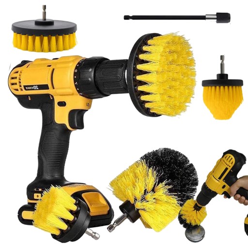 5 szczotek o różnych rozmiarach i nasadka prosta z przedłużką (wiertło nie wchodzi w skład zestawu). Odpowiedniej szczotki można używać do czyszczenia różnych przedmiotów.