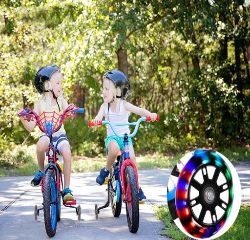 - Kółka do nauki jazdy będą się świecić podczas jazdy, dzięki czemu Twoje dziecko będzie bardziej widoczne i bezpieczne w nocy lub w ciemności. Ponadto fajny, podświetlany projekt sprawi, że dzieci będą zainteresowane nauką jazdy na rowerze.