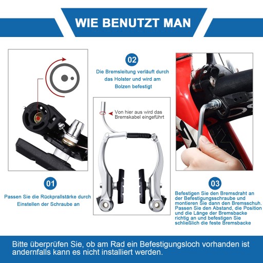 🚲 Praktyczne funkcje: Rowerowy drążek hamulcowy jest łatwy w utrzymaniu i w niewielkim stopniu obciąża rower, zapewniając płynną jazdę. Zestaw hamulcowy jest prosty i przenośny oraz nadaje się do przewożenia przedmiotów. Napięcie ramienia hamulca jest regulowane, rama/widelce w prawidłowej pozycji, łatwa regulacja sprężyny w wewnętrznym napięciu ramienia hamulca. Są to uniwersalne hamulce V-brake kompatybilne zarówno z przednimi, jak i tylnymi kołami MTB/BMX/rowerów górskich/składanych, szczególnie do większości rowerów z małymi kołami, takimi jak 24 cale lub mniejsze.