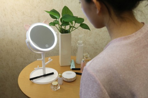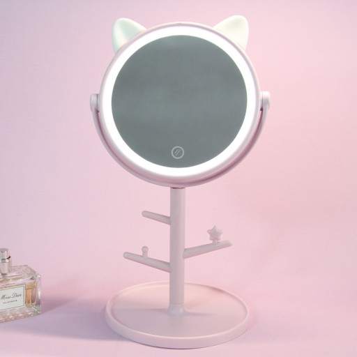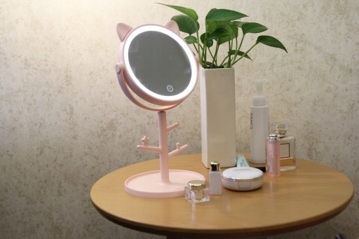 Зеркало для макияжа с сенсорным экраном и светодиодной подсветкой - розовое
