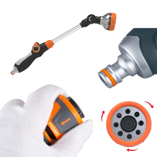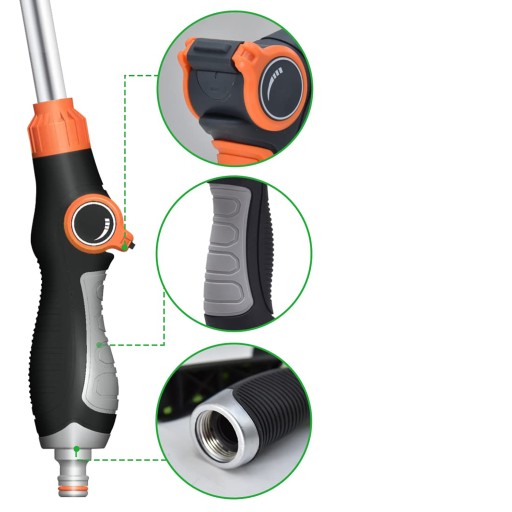 Ten pręt węża pasuje do prawie wszystkich standardowych węży ogrodowych. Jest również wyposażony w gumową uszczelkę, która idealnie nadaje się do przymocowania do węża ogrodowego i zapewnia wyjątkowo wodoodporne uszczelnienie, dzięki czemu dysza jest szczelna i oszczędza niepotrzebną wodę.