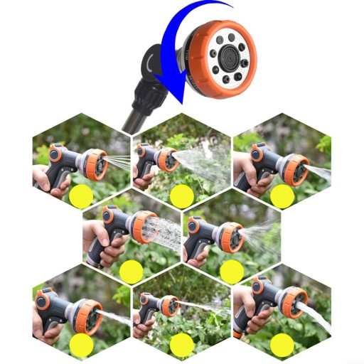 Obróć pokrętło zraszacza, aby wybrać tryb wody. Niezależnie od tego, czy potrzebujesz strumienia wysokociśnieniowego do mycia okien, przydatnego kącika do myjni samochodowej, delikatnego prysznica do czyszczenia krzewów, czy delikatnej mgiełki do podlewania wiszącego kosza, te 8 wzorów zapewni Ci ochronę.
