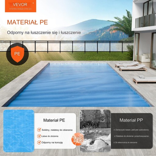 Osłona basenowa została stworzona z trwałego materiału PE, który znakomicie radzi sobie z długotrwałym działaniem promieni słonecznych. Jej wyjątkowa odporność na rozciąganie oraz rozdarcia sprawia, że nie traci koloru ani nie zmienia kształtu, nawet przy intensywnym narażeniu na promieniowanie UV.