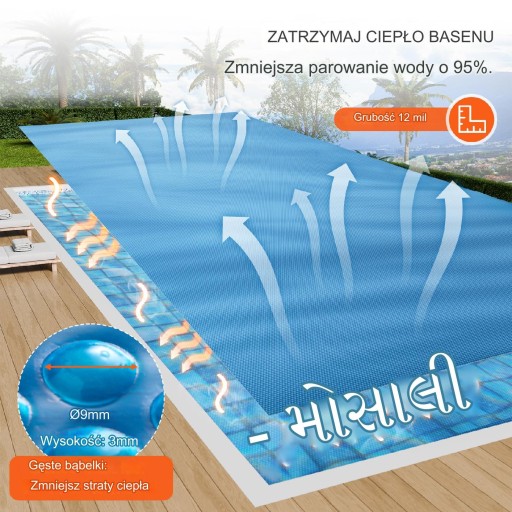 Zamknięta konstrukcja bąbelkowa skutecznie zapobiega parowaniu wody do 95%. Gruby materiał PE doskonale izoluje wodę.