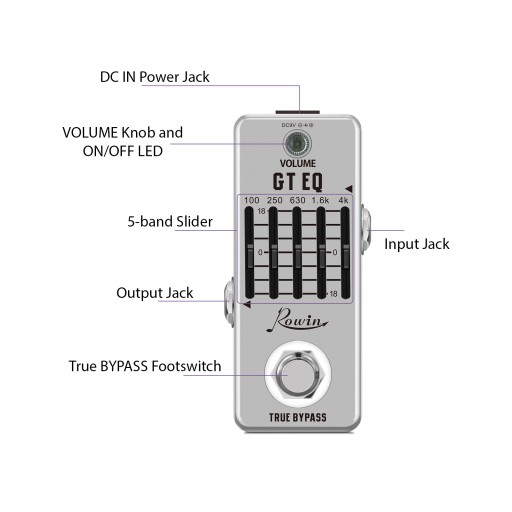 Rowin 5-полосный педальный эквалайзер для электрогитары