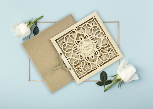 Naturalny charakter drewna pasuje do każdego wnętrza dzięki czemu kartka może stanowić element dekoracyjny.
