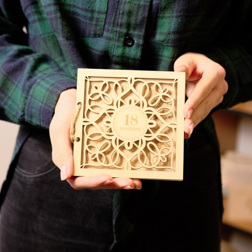 Unikatowy produkt w postaci drewnianej kartki zapakowanej w craftową kopertę. Zawiera wygrawerowane życzenia wraz z podpisem. Spraw radość solenizantowi w dniu jego 18tki!