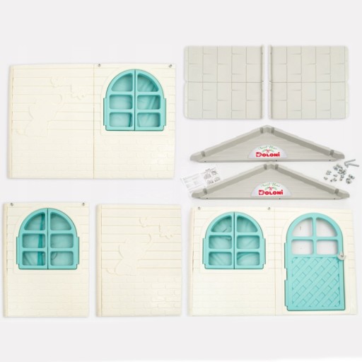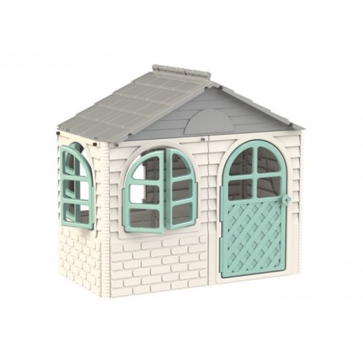 Domek posiada trzy okna z otwieranymi okiennicami oraz zasłonami, które umożliwiają regulację światła i wentylację. Dodatkowo, wyposażony jest w otwierane drzwi wejściowe, które zapewniają łatwy dostęp do wnętrza. To idealne miejsce do zabawy i spędzania czasu na świeżym powietrzu lub w przytulnym wnętrzu domu.