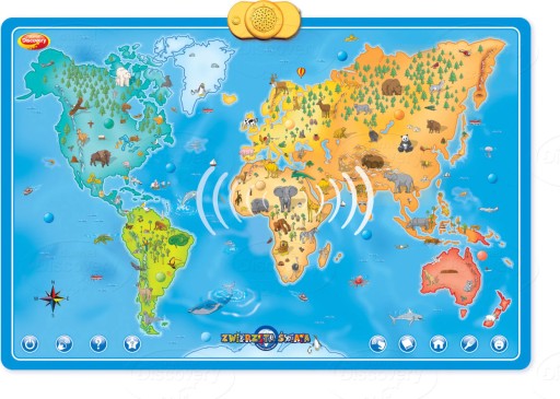 Dzięki innowacyjnej mapie dzieci mają dostęp do szerokiej wiedzy dotyczącej 72 zwierząt z różnych zakątków Ziemi. Poznają ich odgłosy, miejsca, gdzie zamieszkują, czym się odżywiają oraz różne zabawne fakty.