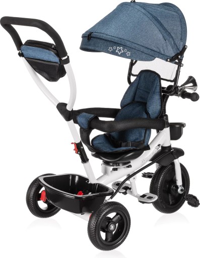 Będzie stanowił bezpieczny i wygodny środek transportu, który będzie mógł zastąpić tradycyjną spacerówkę. Obrotowe siedzisko pozwoli na ustawienie go przodem lub tyłem do kierunku jazdy. Pozwoli to, więc dostosować go do indywidualnych preferencji maluszka. Wygodna rączka do prowadzenia i sterowania rowerkiem pozwoli rodzicom na bezproblemowe operowanie kierunkiem i prędkością jazdy. Dwa pojemniki oraz odpinana saszetka na drobiazgi pozwolą zabrać ze sobą zabawki i inne rzeczy, które przydadzą się podczas spaceru. Bezpieczeństwo zapewnią odpinana barierka i pasy, które zapobiegną one przed wypadnięciem dziecka z rowerka. Komfortowe siedzisko zapewnią wygodę bez względu na jak długi spacer się wybierzemy, a składany daszek uchroni maluszka przed promieniowaniem w słoneczne dni.