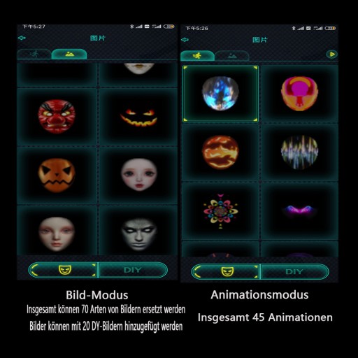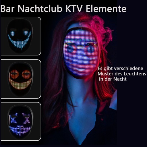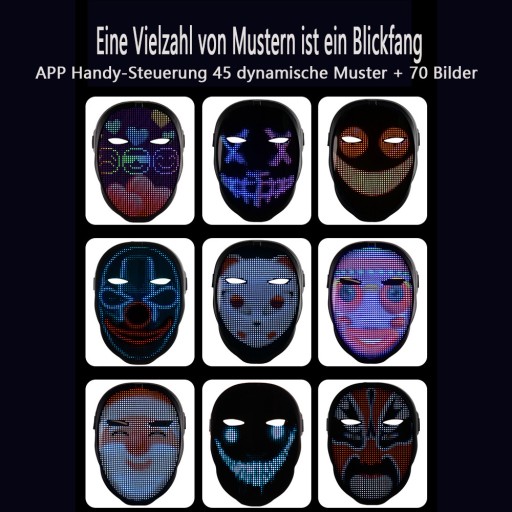 - Maska z wyświetlaczem kontrolowanym przez telefon