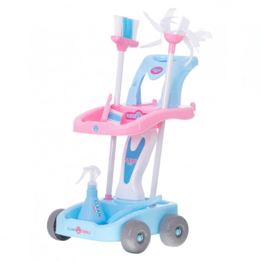Elementy zestawu do sprzątania: szufelka, szczotka, odkurzacz oraz inne artykuły w zestawie są świetnym odwzorowaniem prawdziwych akcesoriów do sprzątana, które bardzo zaciekawią Twoją pociechę. Dołączony wózek pozwala na utrzymanie wszystkich niezbędnych elementów w jednym miejscu co ułatwia utrzymanie ładu i porządku.