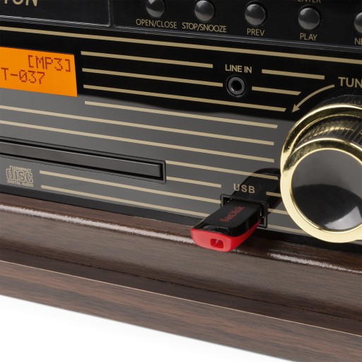 Czy zapisałeś swoją muzykę w formie cyfrowej? Nie ma problemu. Memphis ma wbudowany odtwarzacz mp3 USB, który odtwarza Twoją playlistę bezpośrednio z pamięci USB. Oprócz odtwarzania możliwe jest również nagrywanie muzyki na pendrive USB. Digitalizacja płyt lub nagrywanie z Bluetooth, odtwarzacza kasetowego lub CD jest możliwe.