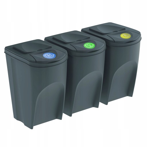 - Komplet trzech plastikowych koszy do segregacji śmieci zdecydowanie ułatwi tę czynność