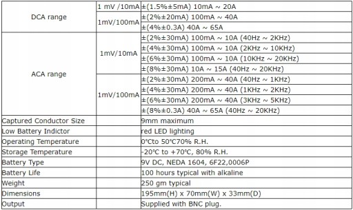 – Hantek CC-65 działa jako przetwornik, umożliwiając multimetrowi mierzenie danych bieżących i umożliwiając oscyloskopowi mierzenie prądu fal. Linowo przekształca prąd AC lub DC na napięcie AC lub DC. Może być podłączony do oscyloskopu za pomocą złącza typu BNC, aby obserwować fale prądowe, lub za pomocą złącza typu banana, aby uzyskać dane prądowe. Jest to wersja złącza BNC.