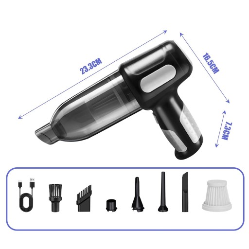 - Przenośny odkurzacz ręczny nadaje się do czyszczenia obudów biurkowych/klawiatur/laptopów/podłogi/szafek/siedzeń sof/futra kotów i psów/śmieci/włosów/klamek drzwi/siedzeń/wycieraczek/narożników/pęknięć/cząstek itp.