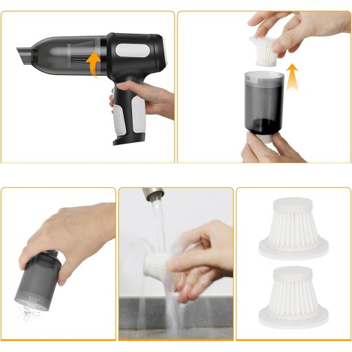 - W miniodkurzaczu zastosowano zmywalny filtr, który jest przyjazny dla środowiska i nadaje się do wielokrotnego użytku, aby uniknąć pozostawiania nieprzyjemnego zapachu.
