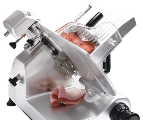 Tarcza tnąca o średnicy 250mm umożliwia krojenie produktów o średnicy sięgającej do 180mm. Dzięki płynnej regulacji grubości krojenia możliwe jest cięcie plastrów o grubości od 0,2 do 12mm.