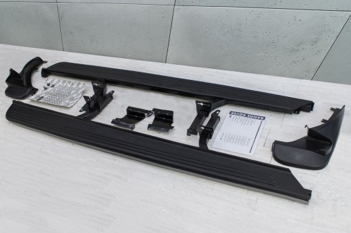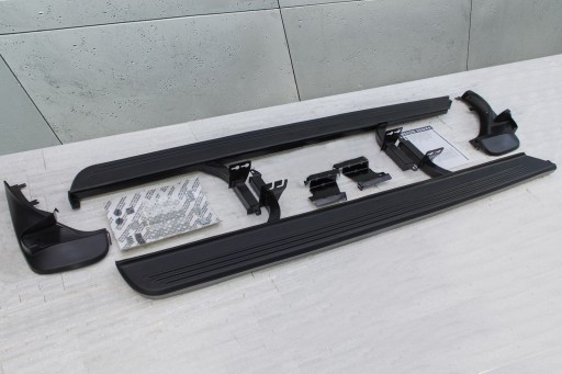 W zestawie komplet stopni bocznych (prawy i lewy), elementy montażowe oraz instrukcja. Progi montowane są na fabrycznych punktach montażowych. Montaż stopni nie wymaga wiercenia dodatkowych otworów! Zalecamy profesjonalny montaż w warsztacie (z doświadczenia wiemy że najlepiej skorzystać z usług zakładu lakierniczego lub blacharskiego ponieważ to te zakłady zajmują się najczęściej montażem listew, dokładek oraz stopni, więc montaż dla tych zakładów jest czynnością intuicyjną).