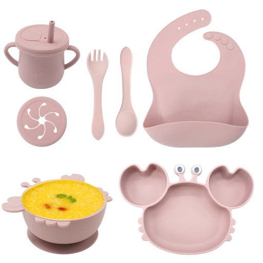 НАБОР СИЛИКОНОВОЙ ПОСУДКИ ДЛЯ МАЛЫШЕЙ 8 ЕЛ ДЛЯ КОРМЛЕНИЯ БЕЗОПАСНОСТЬ РОЗОВЫЙ