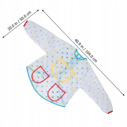 Ten przedmiot to fartuch do malowania dla dzieci, który jest wykonany z wodoodpornego materiału PEVA. Posiada trzy kieszenie do przechowywania pisaków wodnych, farb, przekąsek, ręczników papierowych i innych przedmiotów. Świetne dla dzieci, które uwielbiają malować i rysować i mogą chronić je przed poplamieniem ubrań.