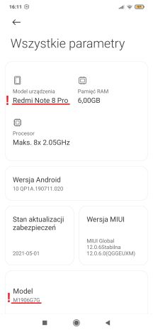 NAZWA URZĄDZENIA: Redmi Note 8 Pro