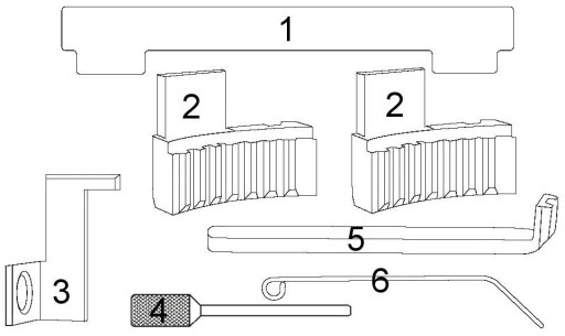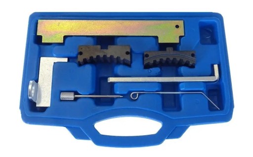 1 – Listwa blokująca wałki rozrządu (OEM: KM-6628A)2 – Narzędzie do ustawiania wałków rozrządu (OEM: KM-6340)3 – Przyrząd do blokowania wału korbowego (OEM: KM-6625) 4 – Trzpień napinacza (OEM: KM-6349)5 – Przyrząd do blokowania koła zamachowego (OEM: KM-911)6 – Trzpień napinacza (OEM: KM-6333)