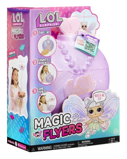 Nowy L.O.L. Niespodzianka! zaskoczy Cię! Dotknij pudełka, aby je podświetlić i rozpakować jak nigdy dotąd. Lalka odlatuje i daje się prowadzić za rękę. Możliwość wielokrotnego napełniania i odnawiania do woli! 3 modele do zebrania.