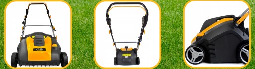 - Czy wertykulator jest łatwy w obsłudze? Tak, urządzenie jest wyposażone w ergonomiczną, składaną kierownicę, która zapewnia komfort użytkowania. Niewielka waga oraz rowkowane koła ułatwiają manewrowanie i przemieszczanie.