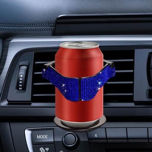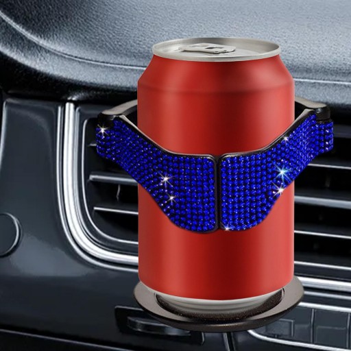 Materiał: Uchwyt samochodowy na kubek wykonany jest z wysokiej jakości materiału ABS ozdobionego błyszczącymi cyrkoniami, pasującymi do większości samochodów z poziomymi wylotami powietrza. Uchwyt na kubek ma miękką podkładkę z gąbki, która jest antypoślizgowa i odporna na wstrząsy oraz redukuje nienormalny hałas podczas jazdy.