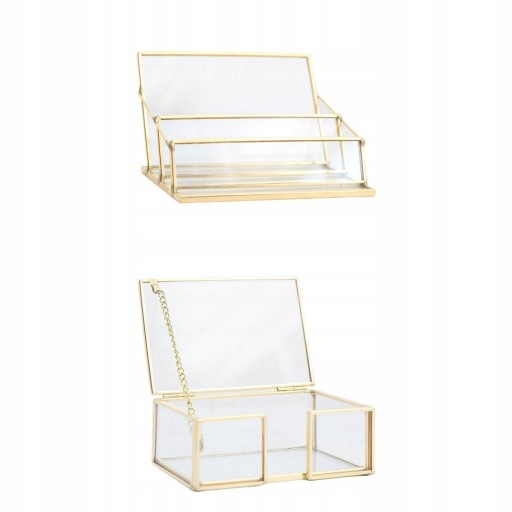 Pudełko na wizytówki wykonane z wysokiej jakości mosiądzu i eleganckiego szkła, metalowa rama jest starannie wykończona pięknym złotym kolorem, pomalowana i nierdzewna Przezroczysta szklana ściana pozwala wyraźnie zobaczyć swoją wizytówkę