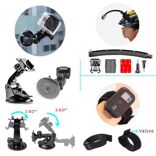 - Kompletny zestaw akcesoriów do kamer sportowych