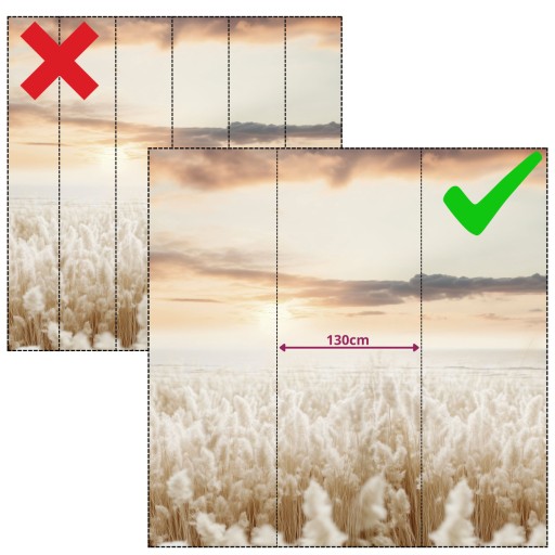 W przeciwieństwie do fototapet z wieloma wąskimi brytami, nasze tapety jako jedne z niewielu na rynku składają się z tylko 3 szerokich pasów.