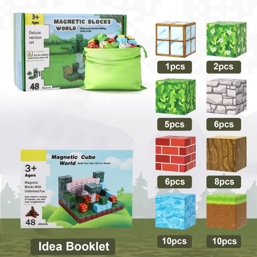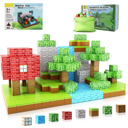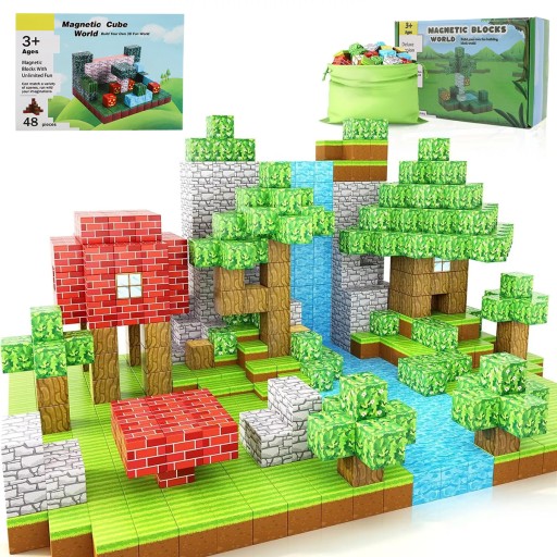 ✨Magnetyczne klocki konstrukcyjne - 1 pudełko z 48 klockami - Build Mine Magnets World Set, zabawka magnetyczna dla chłopców i dziewczynek w wieku 3 4 5 6 7 8 lat, zabawka Montessori od 3 lat prezent dla dzieci✨
