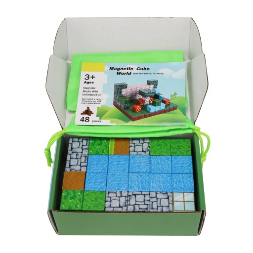 - Łącząc naukę o technologii UV i magnetyzmie, aby uczynić budynek bardziej żywym i realistycznym niż zwykłe, czysto kolorowe kostki, oferuje bogactwo wzorów: Woda, Trawa, Drewno, Kamień, Liść, Cegła, Kwiat i Okno. Dzieci otrzymują wszystko, czego potrzebują, aby udekorować swój mały zamek lub miasto z czerwonej cegły dla swoich lalek. Mogą nawet zbudować leśny parking, na którym zaparkują swoje samochodziki. Daj się ponieść dziecięcej kreatywności i ciesz się godzinami zabawy w odgrywanie ról!
