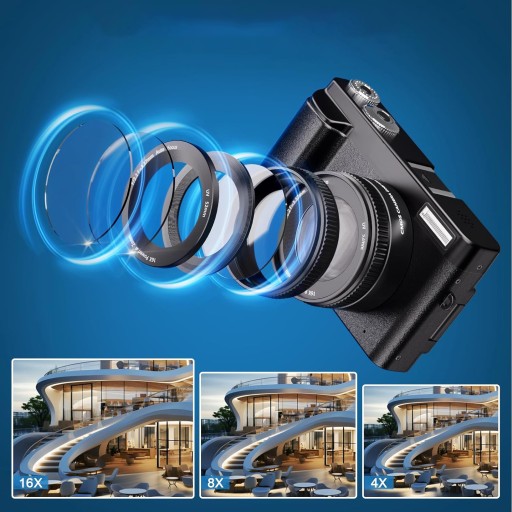- Tego aparatu cyfrowego można używać do tworzenia filmów wideo w rozdzielczości 4K dostępnych w serwisie YouTube. Ta kamera 4K może rejestrować obraz w rozdzielczości 48 MP i obsługuje 16-krotny zoom cyfrowy, pomagając uchwycić i zarejestrować najbardziej ekscytujące i niezapomniane chwile w postaci wysokiej jakości zdjęć lub filmów, idealnych do użytku w pomieszczeniach i na zewnątrz.