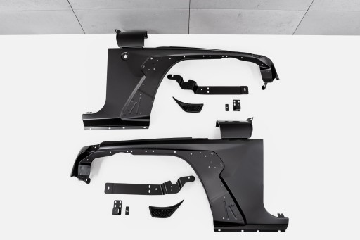 - Komplet błotników przednich - zaprojektowane zostały w stylu charakterystycznym dla JEEPA WRANGLER JL z bocznymi wlotami powietrza