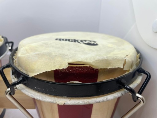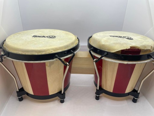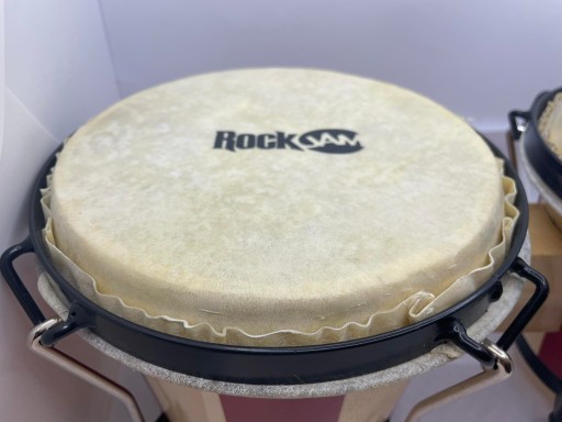 - nazwa przedmiotu: RockJam RJ-100301 7" i 8" zestaw bongo z wyściełaną torbą i kluczem do strojenia, czerwony i naturalny pasek