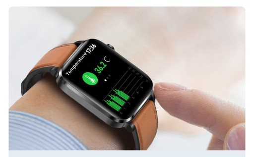 Smartwatch wyposażony został w najnowszej jakości elektrody oraz pulsometr i czujnik temperatury ciała. Posiada w pełni dotykowy, kolorowy wyświetlacz HD, który zamknięty został w cienkiej, stalowej kopercie. Wysoka klasa wodoodporności IP67 sprawia, że bez problemu można myć z nim ręce czy używać w deszczu. Posiada niesamowicie pojemną baterię 200mAh, która pozwala użytkować zegarek aż przez 5-10 dni, a w trybie czuwania nawet do 25 dni!