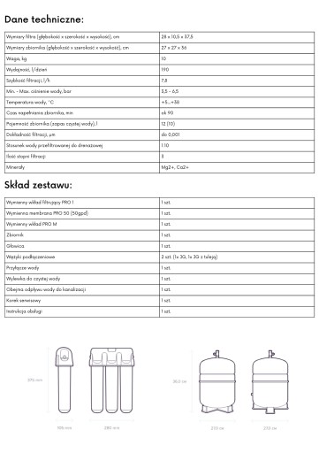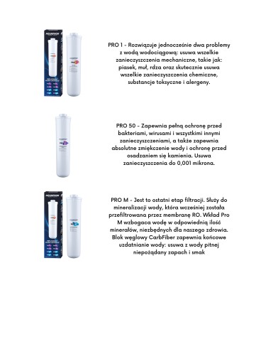System odwróconej osmozy z kompaktowym zbiornikiem i innowacyjnymi wkładami serii PRO. Wkład wstępny Pro 1 2w1 do usuwania zanieczyszczeń mechanicznych o zwiększonej skuteczności filtracji zastępuje dwa wkłady wstępne stosowane w poprzedniej generacji serii filtrów AQUAPHOR OSMO PRO 50 zawiera membranę RO, która bardzo dokładnie usuwa z wody nawet najbardziej niebezpieczne zanieczyszczenia, w tym wszelkie substancje toksyczne, bakterie i wirusy. PRO M odpowiada za końcowe uzdatnianie i remineralizację wody.