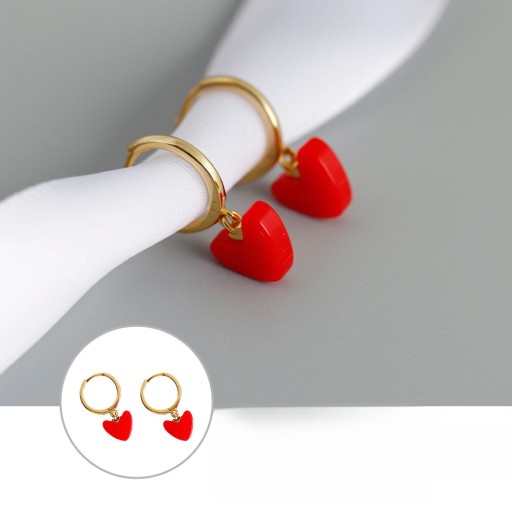 KOLCZYKI KOŁA W KSZTAŁCIE SERCA CZERWONE ŚWIĄTECZNE KROPLE
